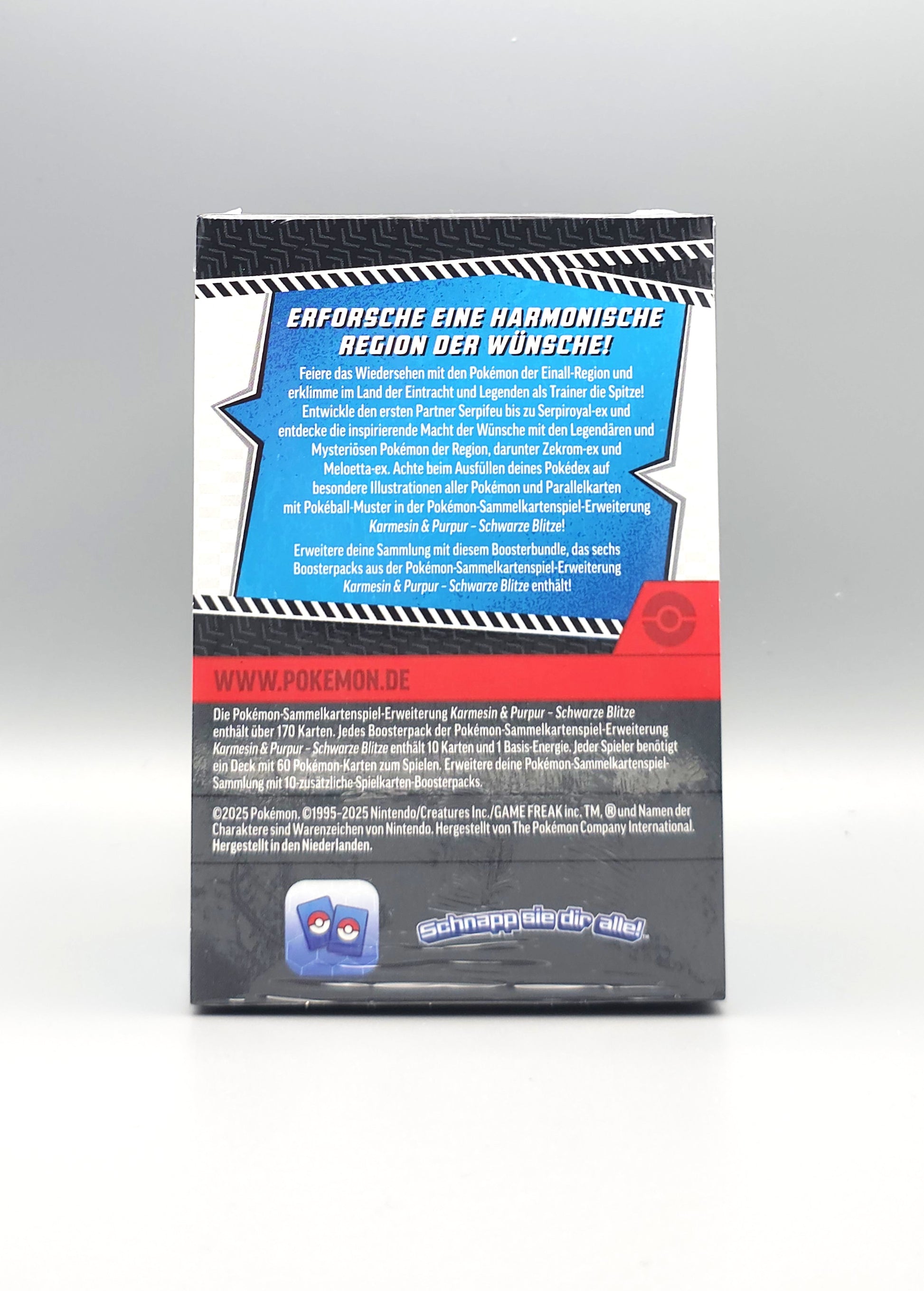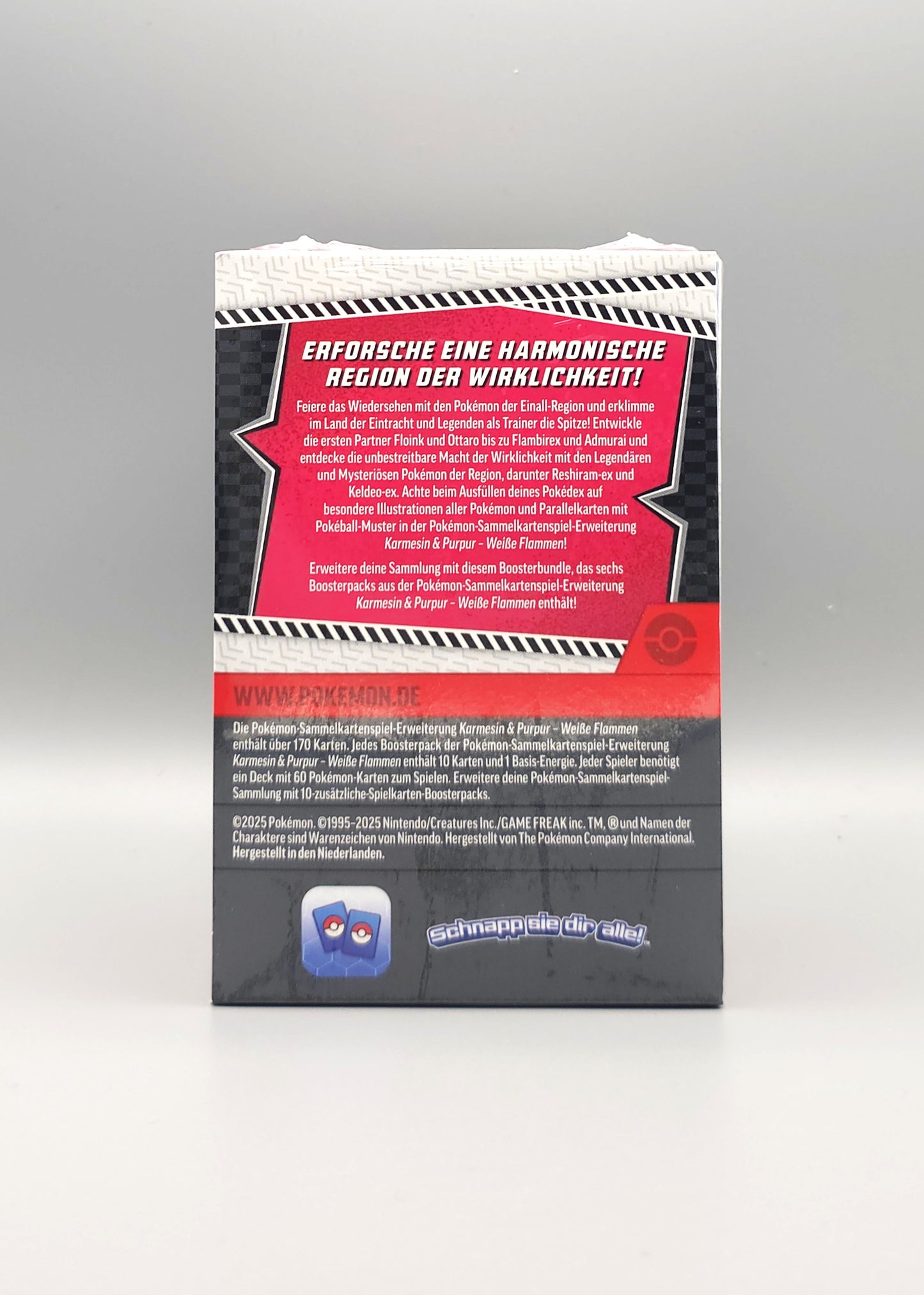 Feiere das Wiedersehen mit den Pokémon der Einall-Region und erklimme im Land der Eintracht und Legenden als Trainer die Spitze! Entwickle die ersten Partner Floink und Ottaro bis zu Flambirex und Admurai und entdecke die unbestreitbare Macht der Wirklichkeit mit den Legendären und Mysteriösen Pokémon der Region, darunter Reshiram-ex und Keldeo-ex. Achte beim Ausfüllen deines Pokédex auf besondere Illustrationen aller Pokémon und Parallelkarten mit Pokéball-Muster in der Pokémon-Sammelkartenspiel-Erweiterung